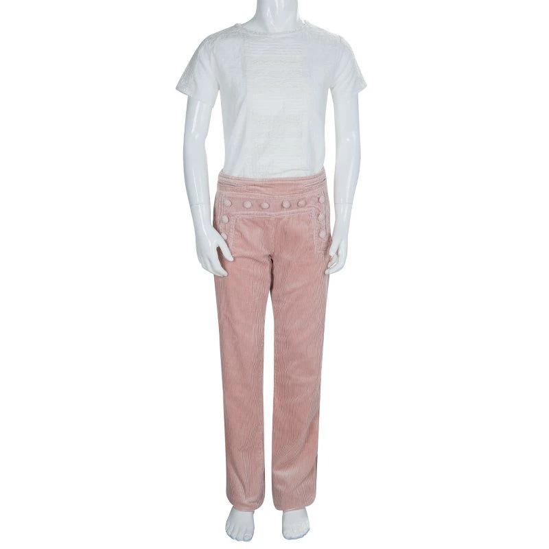 Dress your little one in these adorable pink corduroy sailor pants from the fashionable house of Little Marc Jacobs for the young fashionistas of today. Styled with an elasticated waist and button detail around the front, this pair of pants adds to your child’s cute factor.