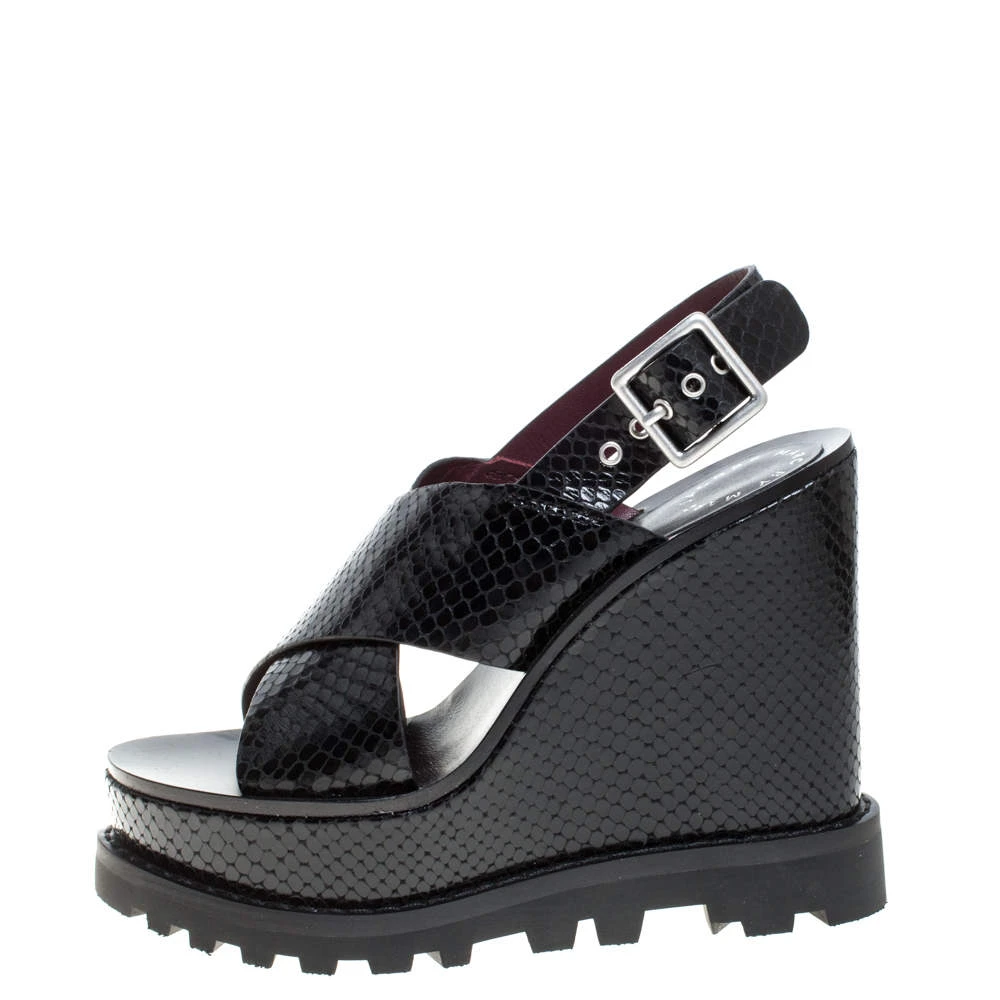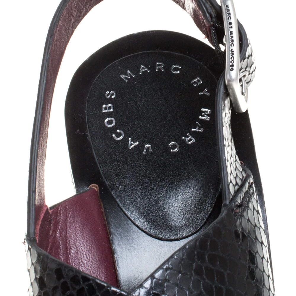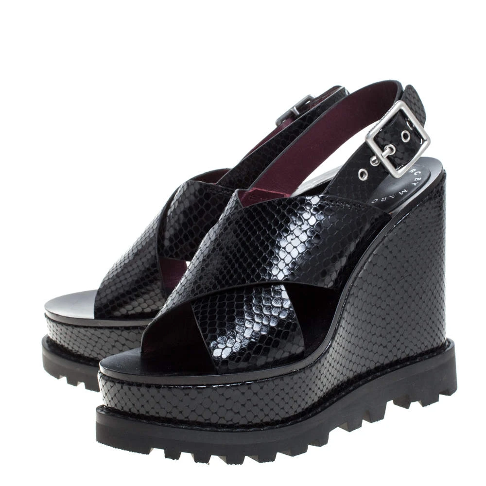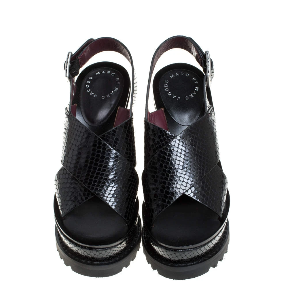 Classy and edgy, these Irving platforms sandals from Marc by Marc Jacobs will perfectly compliment all your contemporary outfits! The black sandals are crafted from python-embossed leather and feature cross straps on the vamps. They flaunt buckled ankle straps and come equipped with comfortable insoles and 12 cm solid wedge heels.