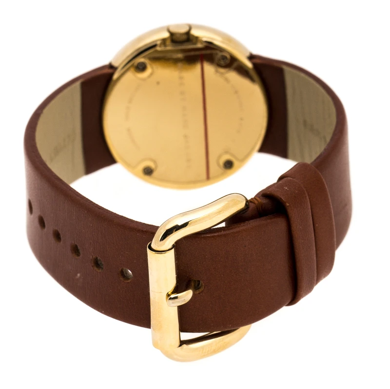 Featuring a minimal design, this watch from Marc by Marc Jacobs will be just right for everyday use. It features a gold-plated case held by leather straps. The bezel is smooth and on the white dial, the hour markers are set with the brand name. This quartz watch is complete with a buckle clasp.