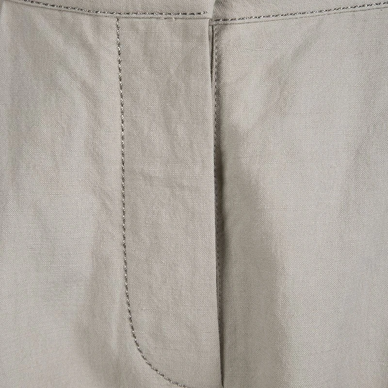 These Marc Jacobs beige linen and cotton blend pants are a perfect summer wear for the casual everyday use. These wide leg pants are cropped and pleated at the front for a comfortable casual chic look. This beige pant is further accentuated with white bird motifs all through the side of the pant for an added detail.