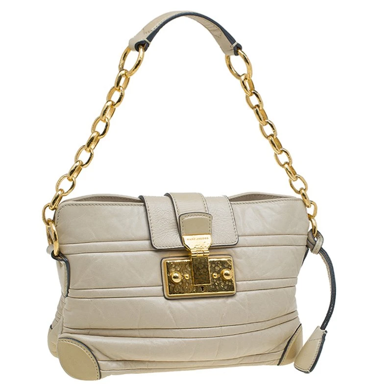 Strong love for fashion and commitment to quality has made Marc Jacobs the brand it is today. ‘Mariah’ shoulder bag from the house of Marc Jacobs is one classy piece to own. It is designed in a beige leather with gold-tone accents that further adds to the beauty. secured with a flap-over golden buckle closure, this bag features leather trims and a chain and leather shoulder strap. The lined interior can easily house all your essentials.
