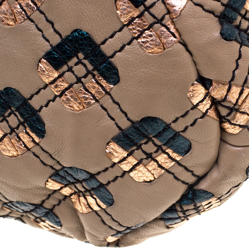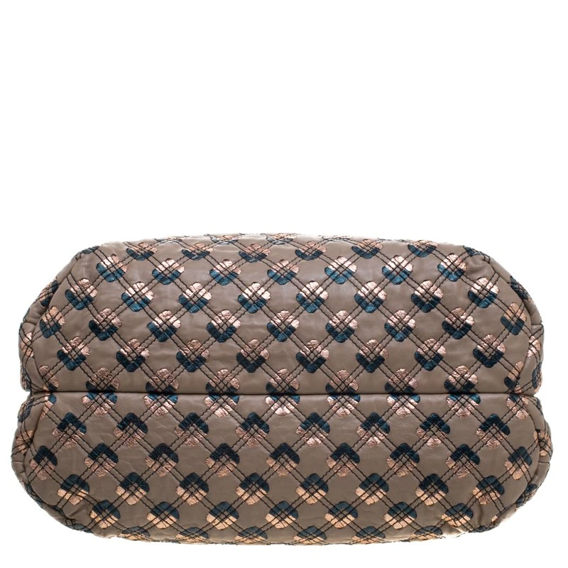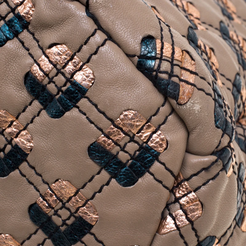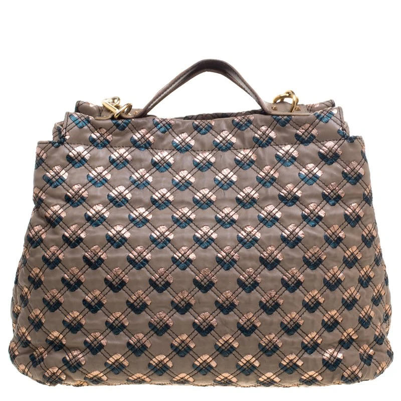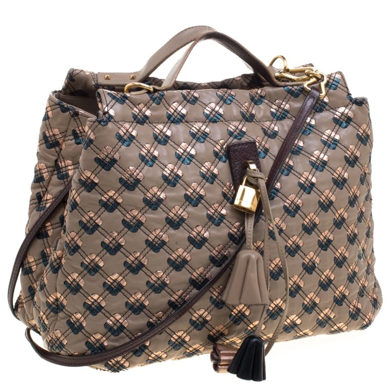This pretty Robert Leslie tote is from Marc Jacobs. It has been crafted from leather and styled with a quilted stitch pattern on the exterior along with two tassels and a little padlock that carries the brand name. The tote is equipped with two top handles, a shoulder strap and a satin interior that houses two compartments.