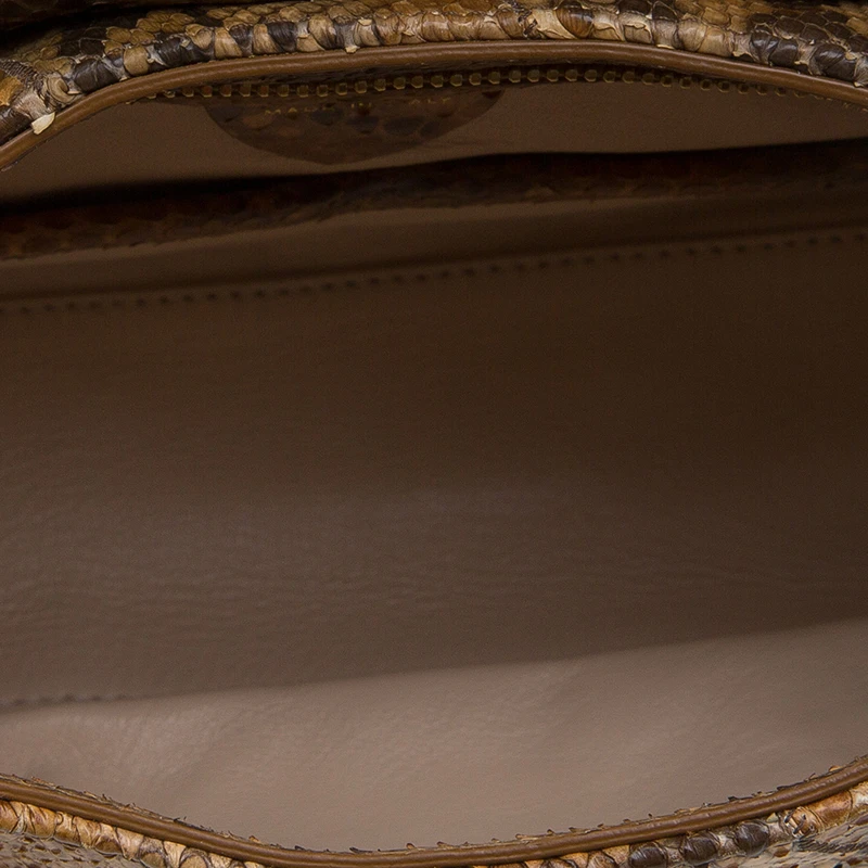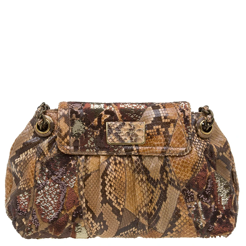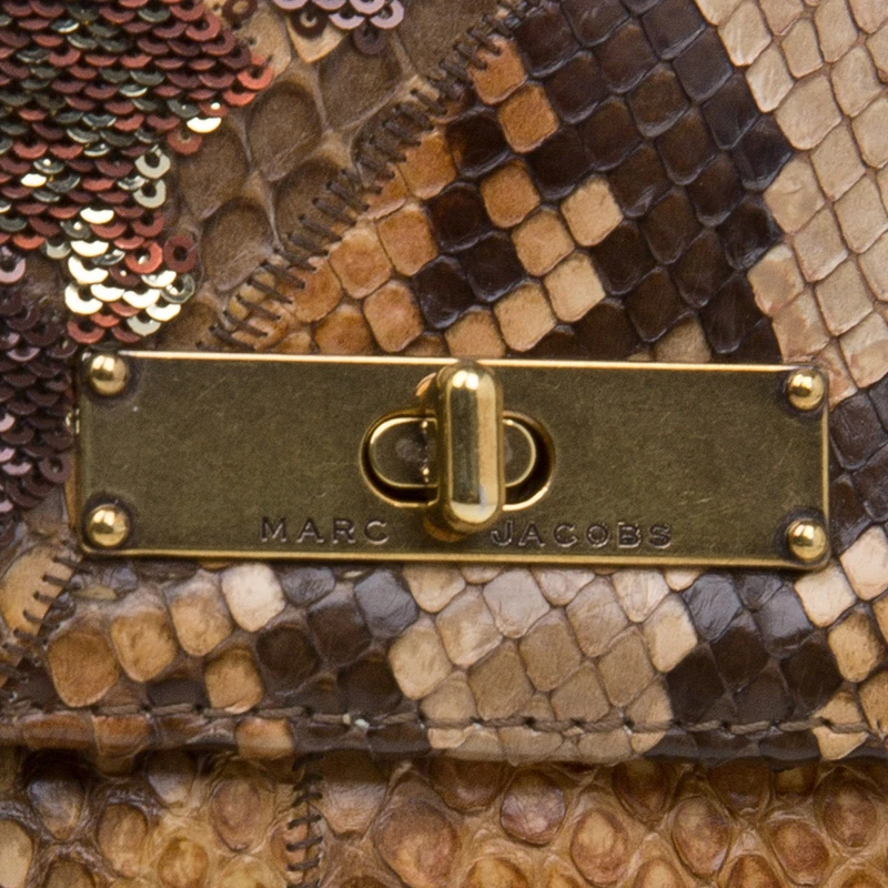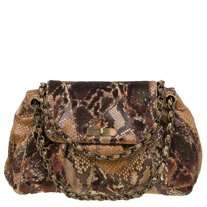 Bringing you bling with an exotic flair, this Mae shoulder bag by Marc Jacobs is crafted from python skin and sequin embellishments. It has a chain woven leather strap with a flap closure having a twist lock fastening. The leather lined interior features a zipped pocket.