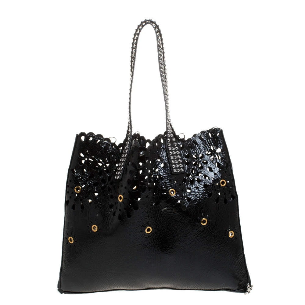 Marc Jacobs brings you this super-stylish tote that carries a design which will surely reflect your fashionable side. It has a black leather exterior detailed with laser-cut work. The tote is complete with a spacious interior and two top handles.