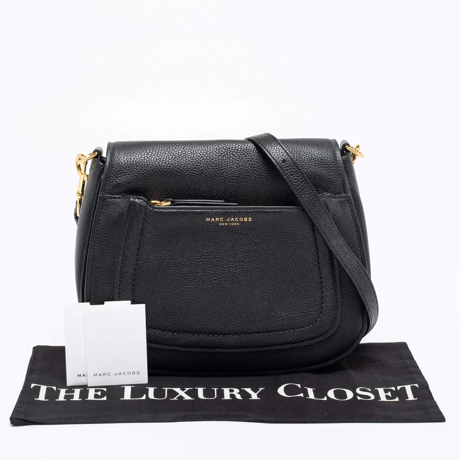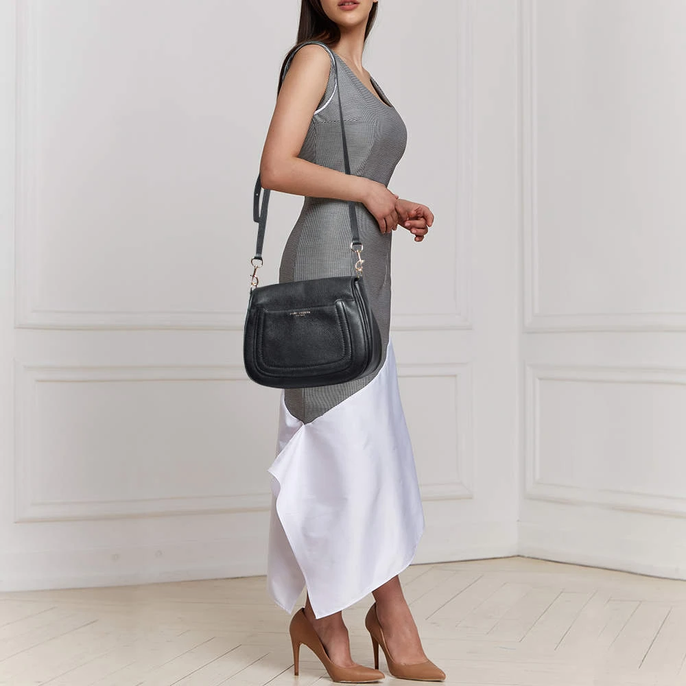 With a chic and contemporary shape, this Marc Jacobs bag is filled with functional details. Made from leather, it flaunts gold-tone hardware, a shoulder strap, and a canvas-lined interior. The brand detailing on the front zipper pocket lends it a signature finish.