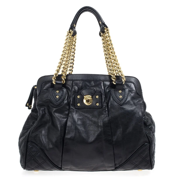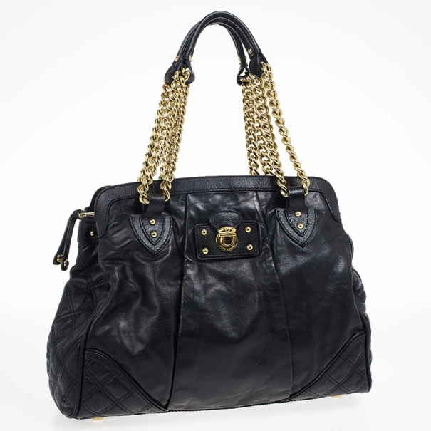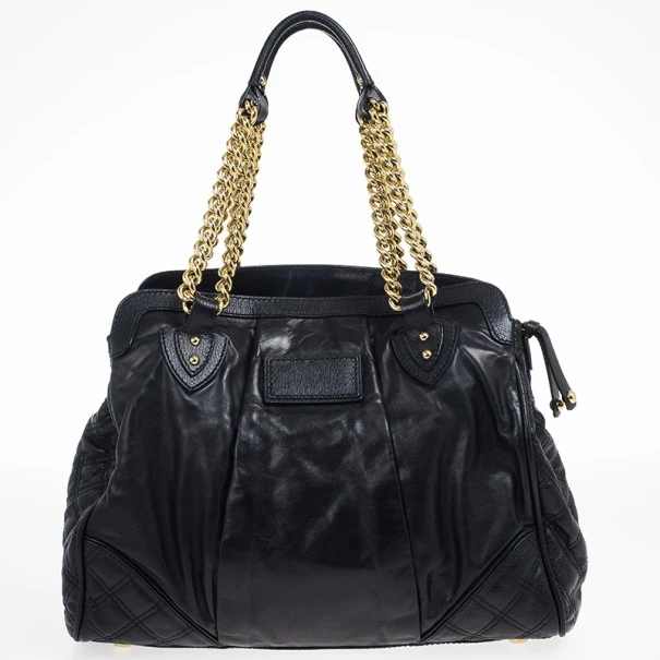 Boost your wardrobe with this practical Marc Jacobs Black Leather Mix Quilted Classic East-West Tote Bag. Made from black leather with quilted detailing, this tote features double chain link handles, four protective feet and a spacious three compartment, fabric lined interior. Original Retail Price:US $1,495