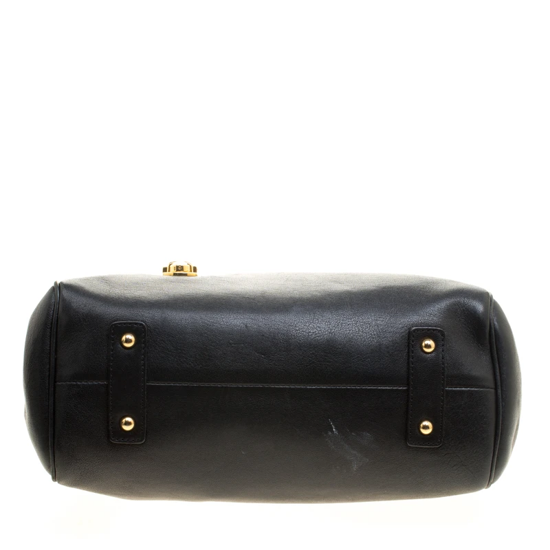This Marc Jacobs Stam satchel is crafted from leather and features black exterior. The bag has a kiss lock closure, dual handles, a front zip pocket, protective metal feet and a detachable chain strap with leather shoulder rest. The canvas lined interior houses a slip pocket to keep your essentials safe.