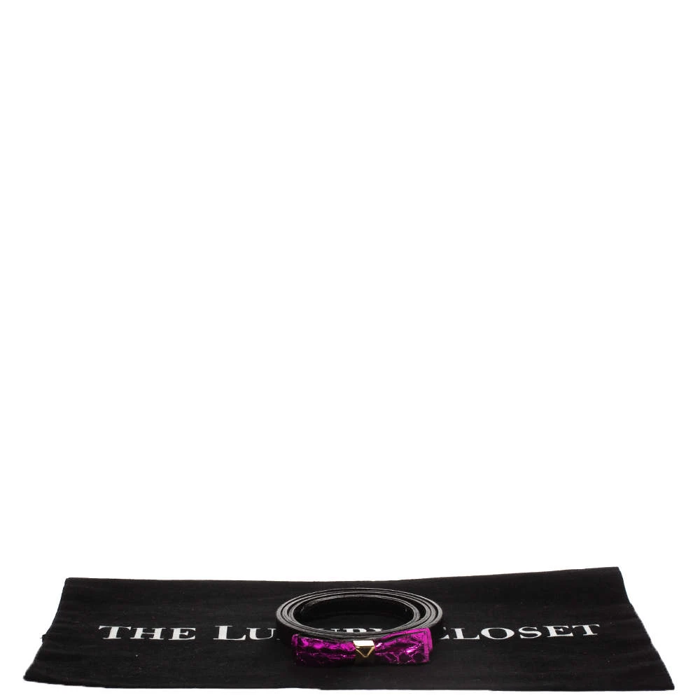 Marc Jacobs’ belt has a magnificent bow accent in a purple shade on the front. Crafted from black suede, the belt has a sleek design and it will easily add a luxe touch to your ensemble.