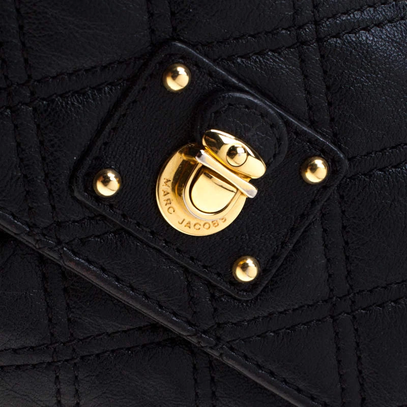 This Marc Jacobs bag will complete your classic ensemble with ease. Made from pink leather, its quilted stitching gives a classy and vintage look. The front flap features a gold-tone push lock. The interior is lined with leather and fabric and has a zipped compartment and a slit pocket, making the interior practical and spacious. The shoulder strap is made from a gold-tone chain and includes a flat leather strap at the top for comfortable wear.