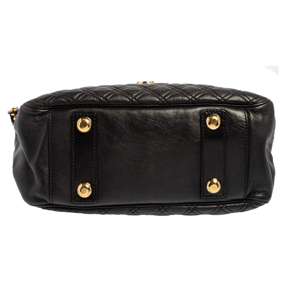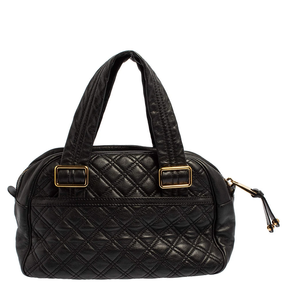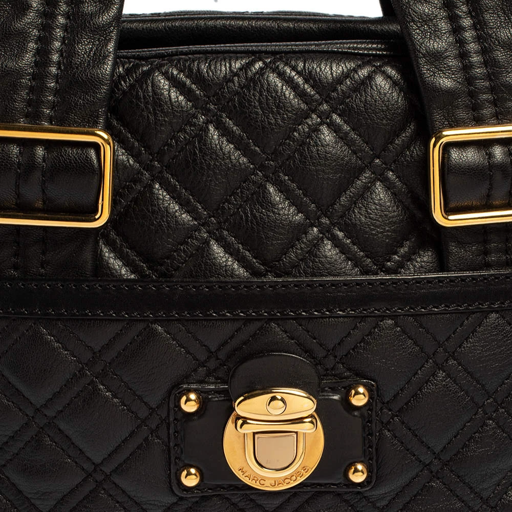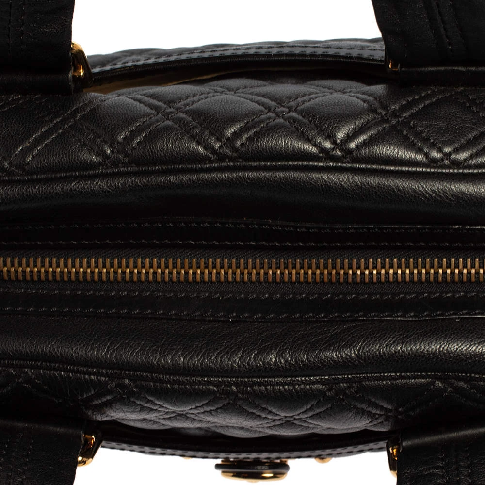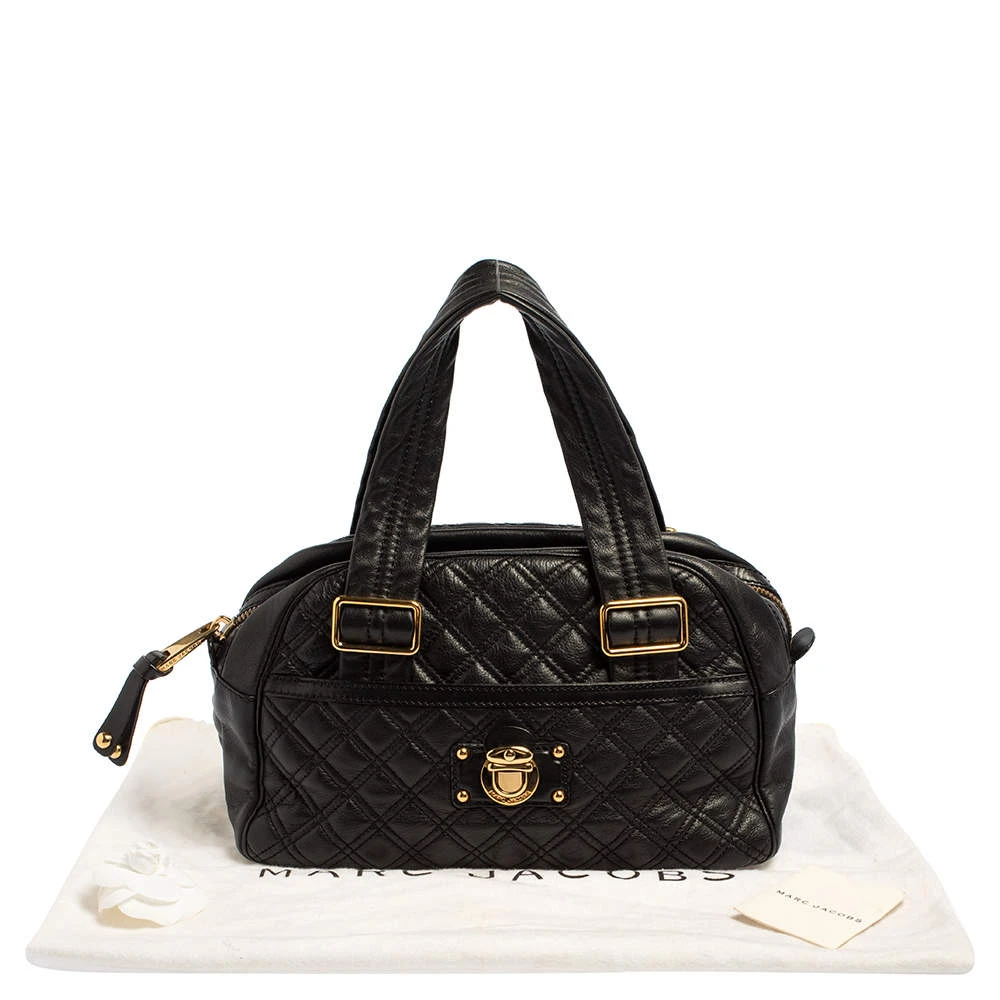 This Marc Jacobs Ursula bowler bag is made from quilted black leather. It features an engraved push-lock detail on the front and twin handles. The interior is lined with canvas and houses a patch pocket and a Marc Jacobs label.