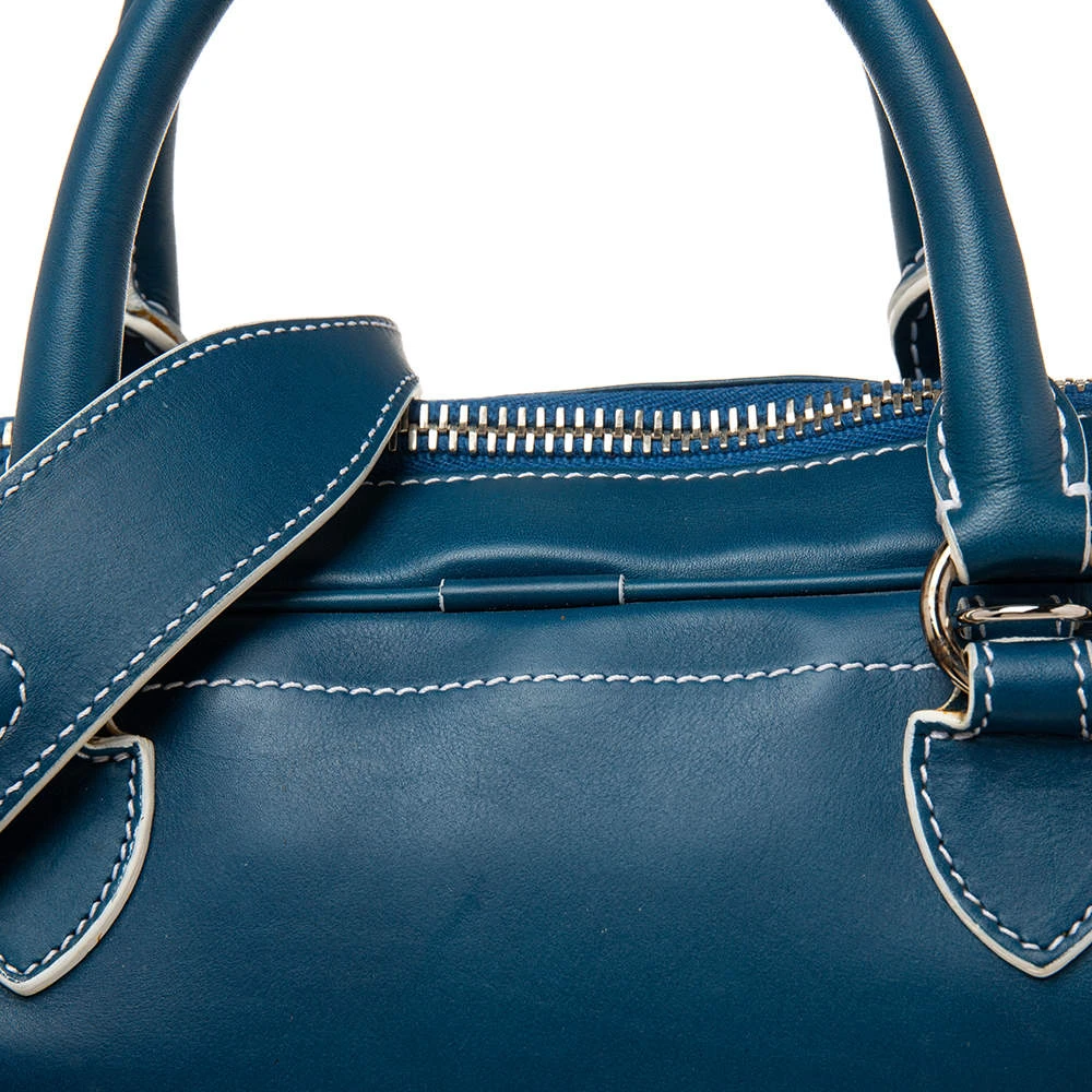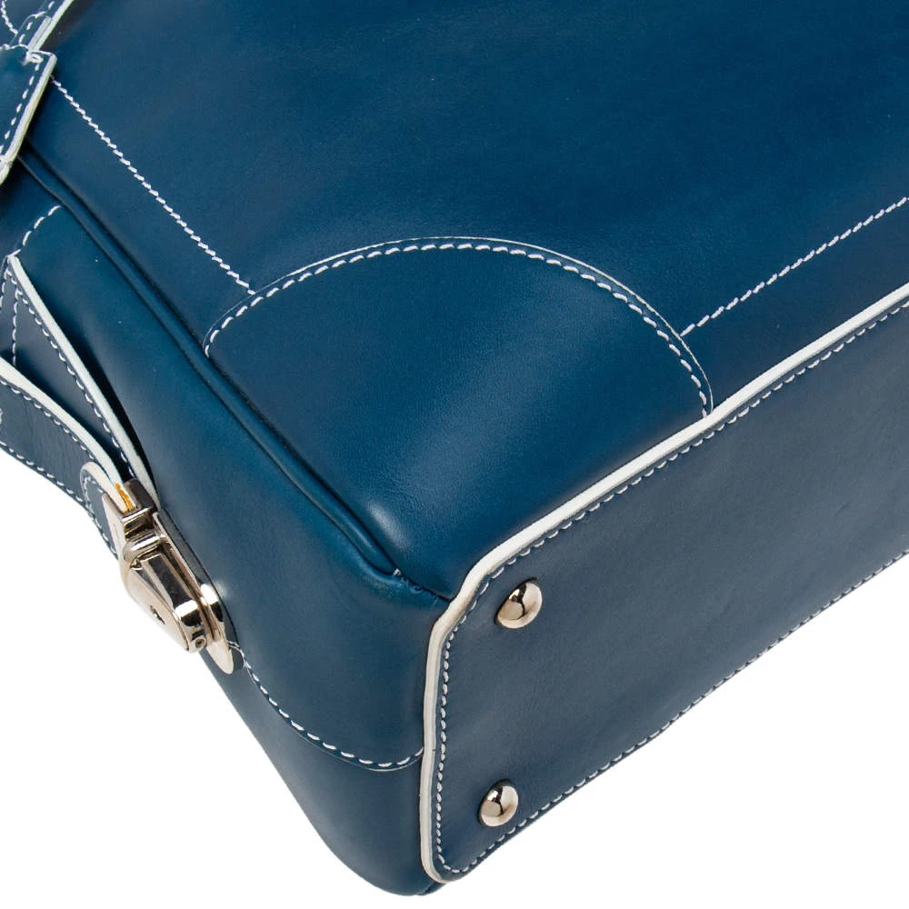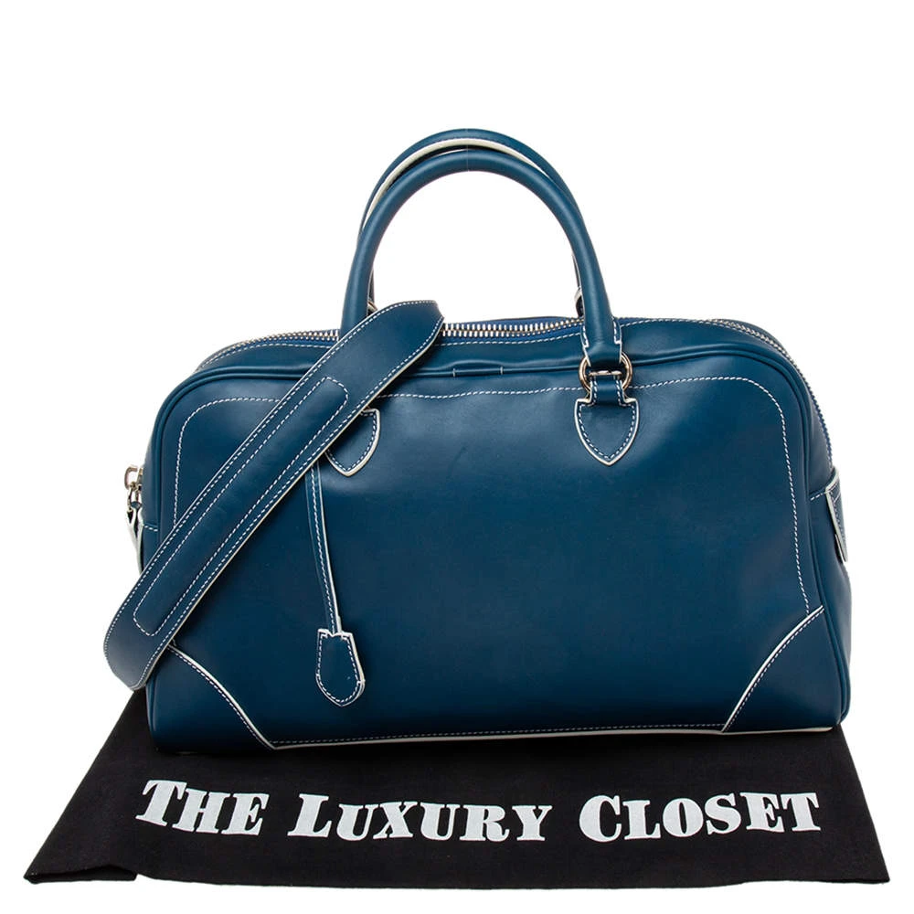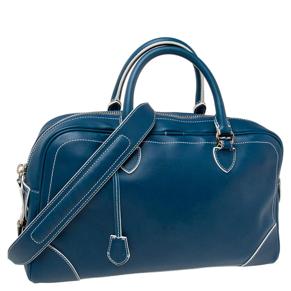 This ‘The Venetia’ bowler bag from the House of Marc Jacobs is great to appear stylish and trendy! It is made from blue leather on the exterior. It features a spacious canvas-lined interior, silver-tone hardware, and top handles. It is provided with a strap. This stunning bag is certainly worth the investment.