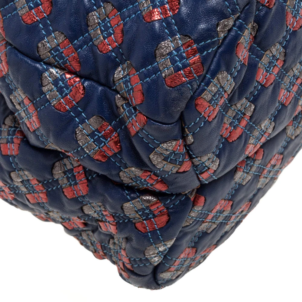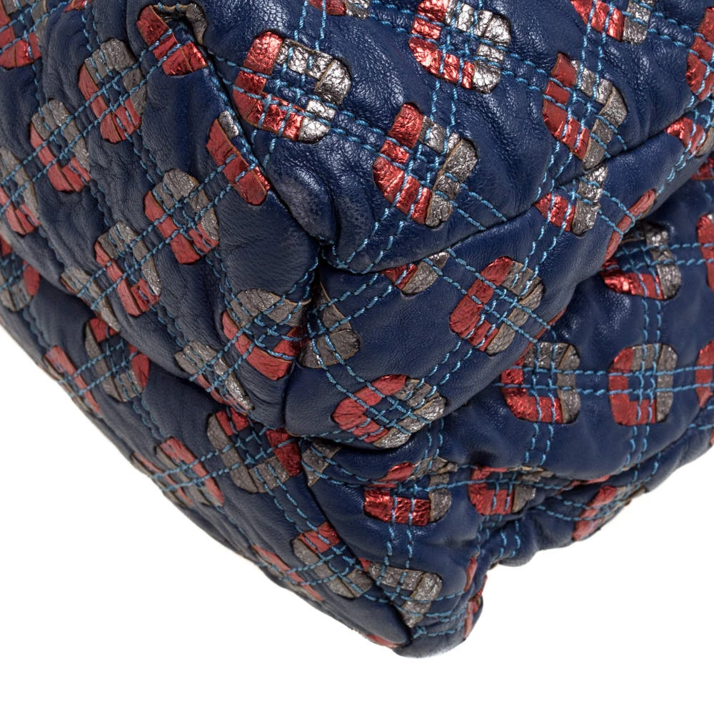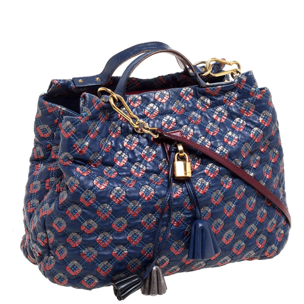 This Marc Jacobs Memphis Robert Jena bag has a quilted design. This bag also has leather tassels, gold-tone hardware, double top handles, drawstring closure and a shoulder strap. Lined with satin, its interior houses a single zipped pocket.