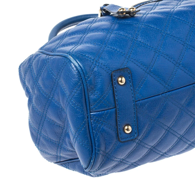 This Marc Jacobs design has a blue quilted exterior crafted from leather and enhanced with gold-tone hardware. This elegant Stam bag features a kiss-lock top closure that opens to a fabric interior, dual top handles and a removable chain that converts this piece between shoulder and hand styles easily. Swing this beauty wherever you go and make heads turn!