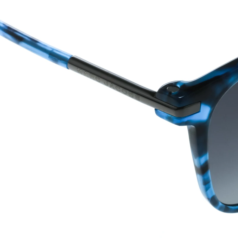 Beautifully constructed square sunglasses are easy to wear and perfect for everyday use such as this Marc Jacobs piece. In a contemporary blue tortoise hue, this piece features grey lenses and grey-tone metal inserts at the arms which are etched with the brand name to complete the look.