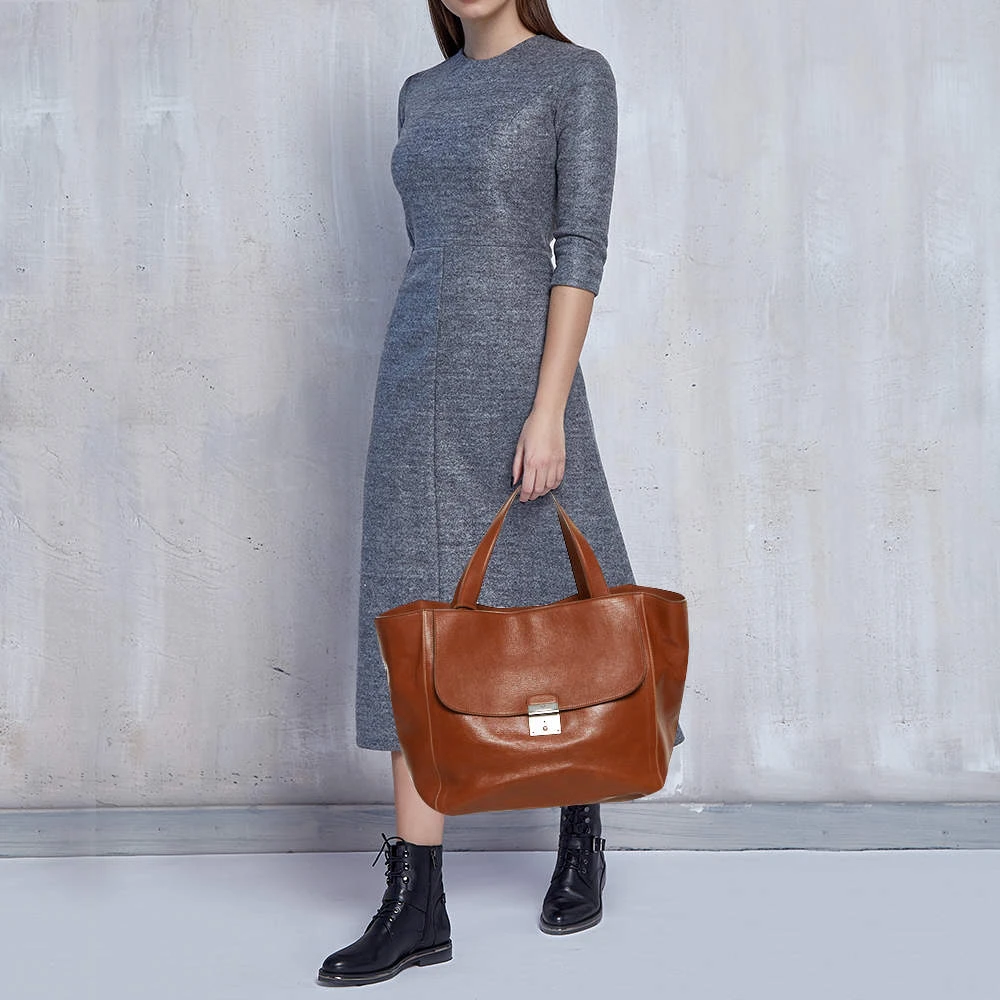 Elegant and stylish, Marc Jacobs’ designs capture the effortless, nonchalant finesse of the modern woman. Crafted from leather in a brown hue, this chic tote features a handy front pocket and a spacious interior. The sleek, understated silhouette is punctuated with silver-tone hardware.