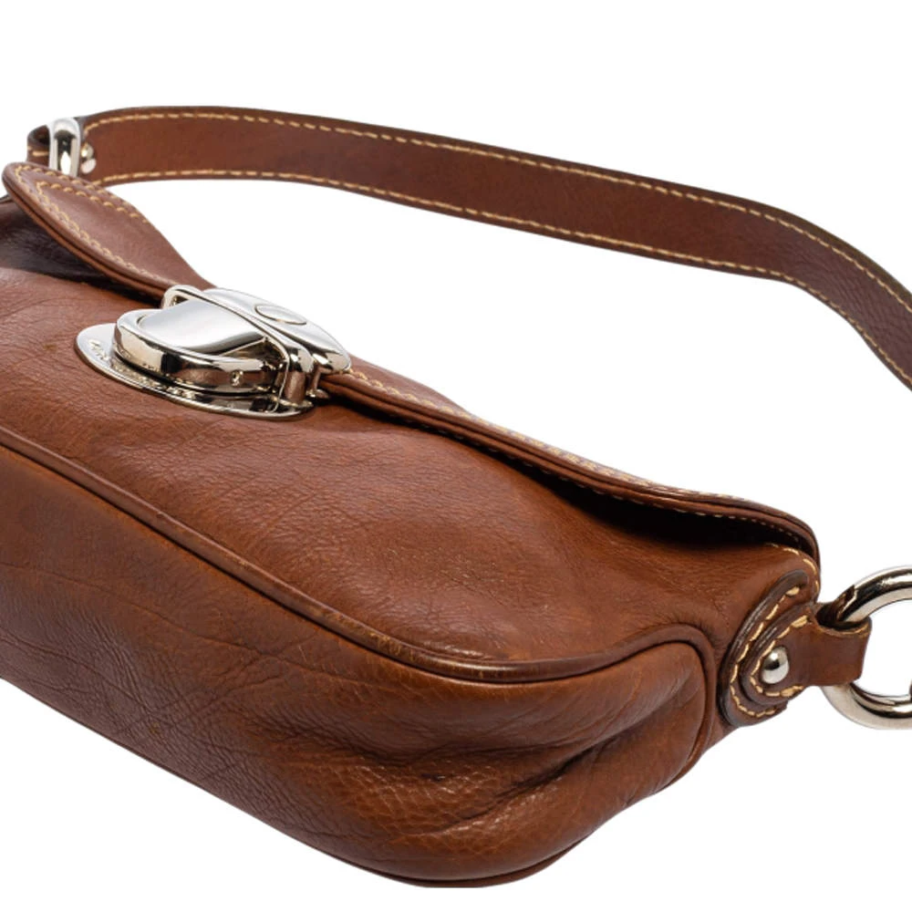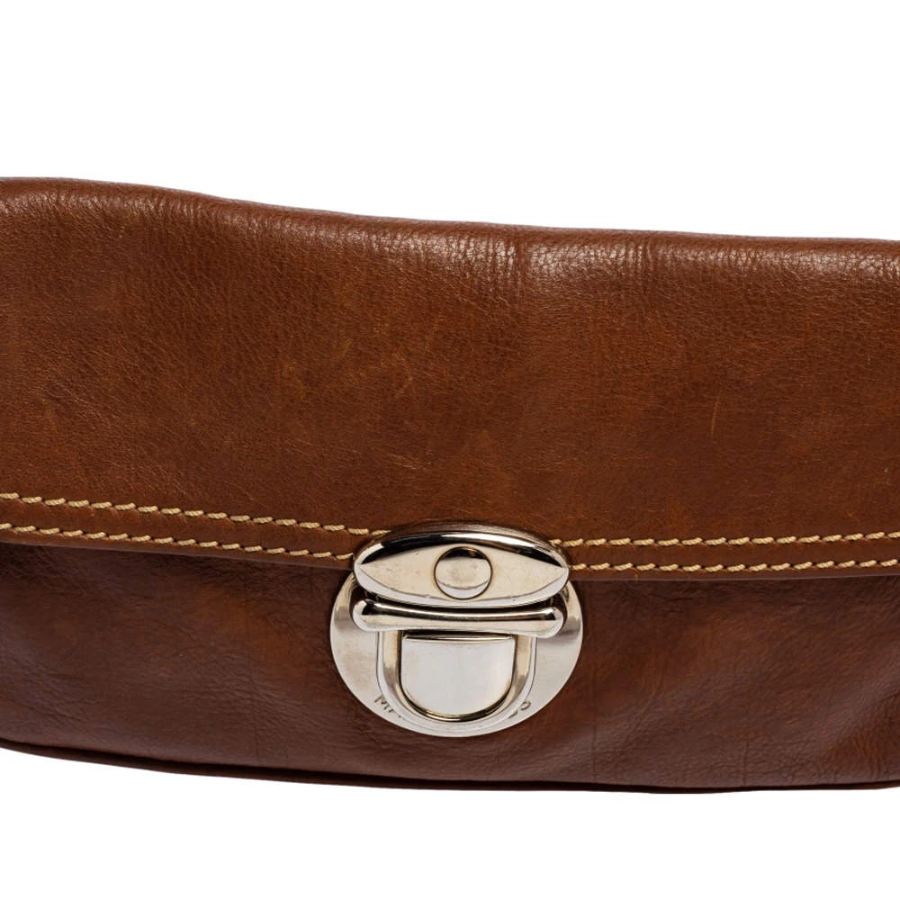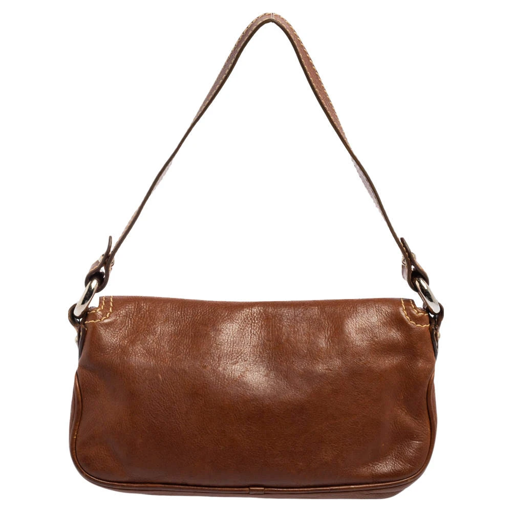 This baguette bag from Marc Jacobs, with its simplistic design and easy structure, proves to be a great pick for everyday casual use. It is made from brown leather and has a silver-toned pushlock feature on the front. It has an 18 cm handle drop and a suede-lined interior.