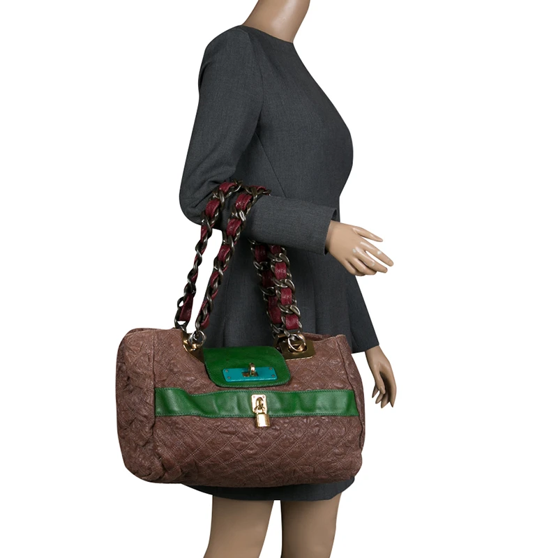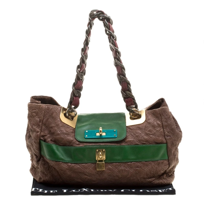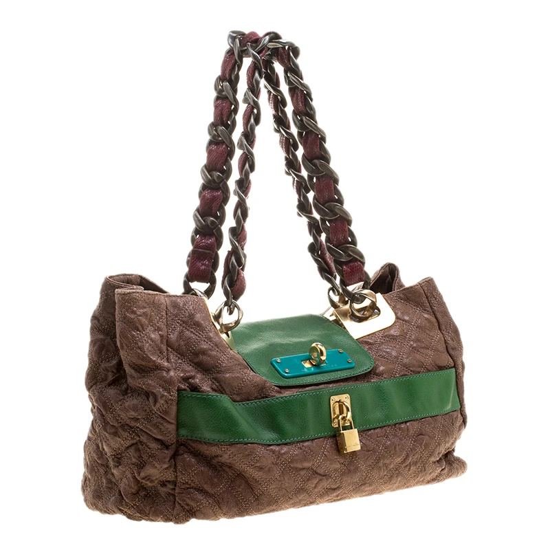 Every woman needs a bag that is gorgeous and functional, just like this shoulder bag from Marc Jacobs. Crafted from quilted leather, it has been styled with a padlock on the front, a twist-lock flap securing a spacious fabric interior and it is held by woven chain handles. This is definitely one handy bag that deserves to be yours.