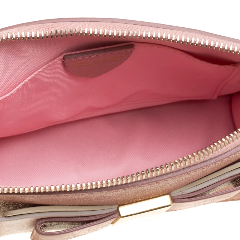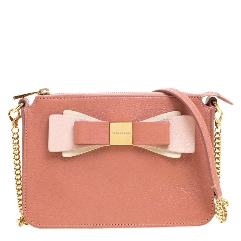 A lovely accessory to complement both your casual looks, this crossbody bag from Marc Jacobs is crafted with leather and detailed with bow accents on the front. The fabric interior of the bag is designed to stow your basics comfortably. Complete with a chain shoulder strap that can be worn over one shoulder or crossbody, this bag is as functional as chic it is.