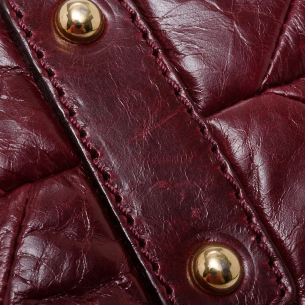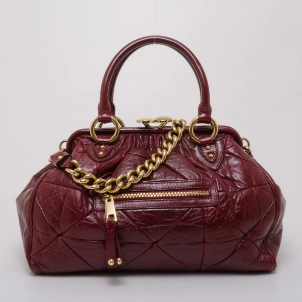 Debuting in 2005, the Stam is still one of Marc Jacobs’s most popular ‘it-bags’ amongst celebrities and fashion-forward women. This version is made from quilted leather in a beautiful shade of burgundy and is accented with a framed kiss lock closure, a gold chain link shoulder strap, double handles and a front pocket. The spacious interior is lined with beige linen fabric and features a zip pocket. Original Retail Price: US $1,550Condition: Gently Used (Signs of wear on hardware and slight scratches on top piping. Minor scratches on bottom of bag, otherwise no major marks on exterior and clean interior)Dimensions: 35 CM(L) 26 CM(H) 8.5 CM(W)Handle Drop: 12 CM Handles (Distance between handle and top of the bag) Shoulder Strap: 33 CMMaterial: Leather Exterior, Fabric InteriorHardware: Gold-toneIncludes: The Luxury Closet Dustbag