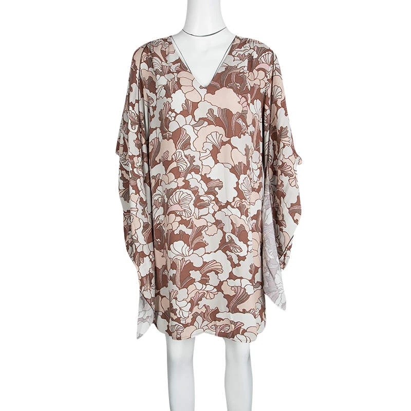 Cut from a lightweight rayon fabric, this Marc Jacobs tunic features a floral print all over and comes with long sleeves. It comes with a coordinating scarf that can be styled as a cape for a unique look. It features a V-neckline and looks best styled with leggings or skinny-fit jeans.