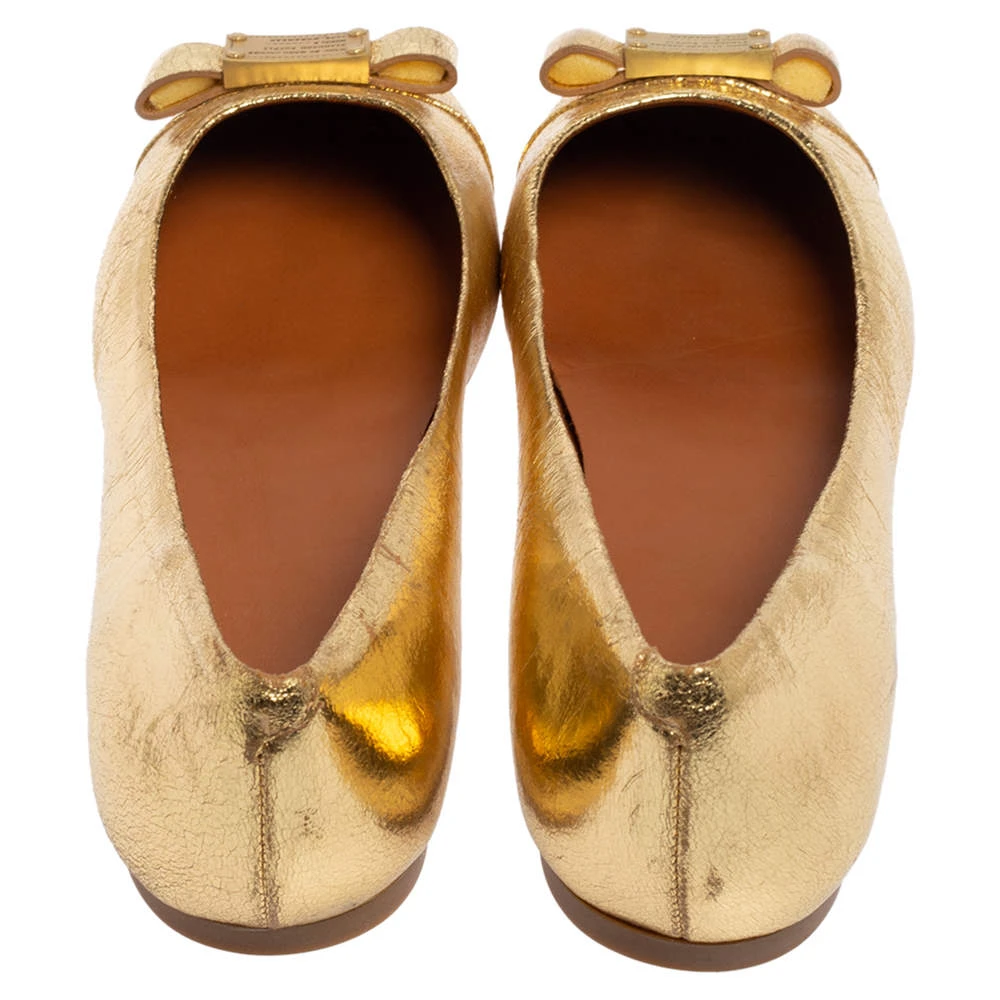 Flaunting an elegant exterior made from gold leather, these ballet flats from Marc Jacobs are certainly the right pick to look polished. They additionally feature a gold-toned logo bow detail on the front.