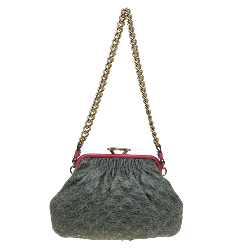 This compact cutie from Marc Jacobs is crafted from a green snakeskin with a contrasting bright pink trim. There is a long gold-tone chain and small exterior zipped pocket, and internal zip pocket too, to keep all your essentials organised on your night out on the town.