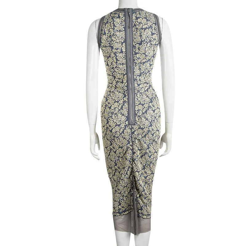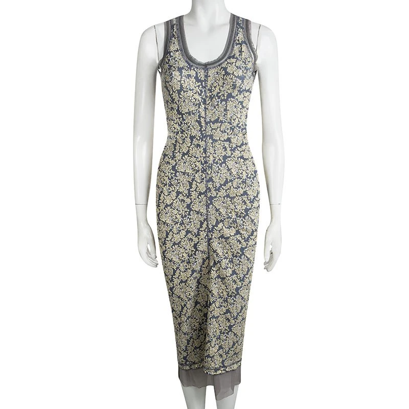 Edgy, creative and quite different, this Lurex jacquard knit dress from marc Jacobs definitely needs to be on your wishlist. The fabulous grey dress is made of a polyester blend and features an embossed floral pattern all over it. The sleeveless creation flaunts a plunging round neckline and a long zip closure at the back. Pair it with pastel pumps and a trendy sling bag to make heads turn.