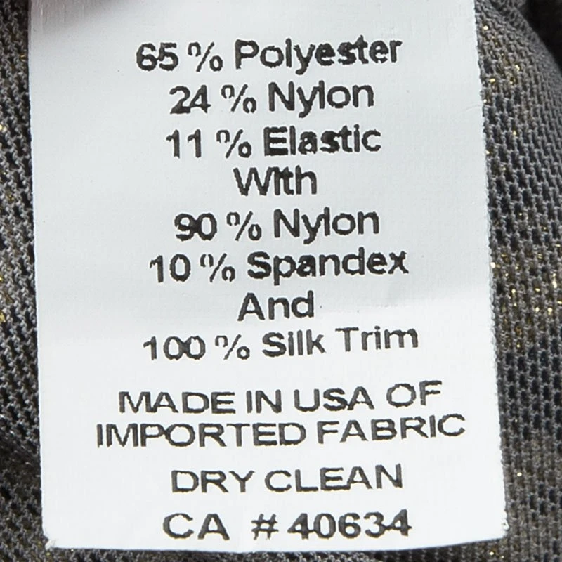 - Fabric: Shell: 65% Polyester , 24% Nylon , 11% Elastic ; Trim: 100% Silk ( Lining: 90% Nylon , 10% Spandex)