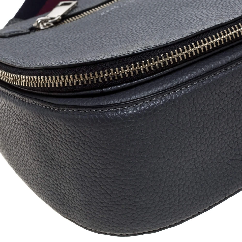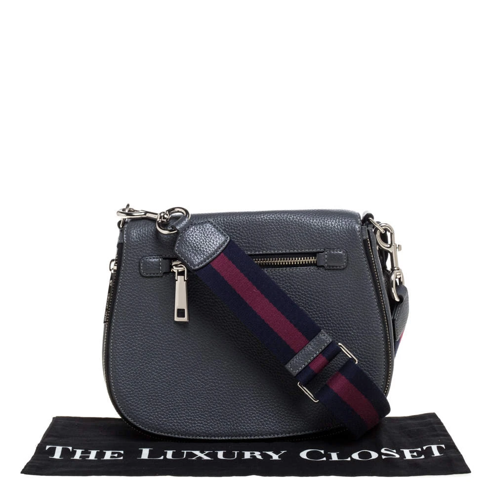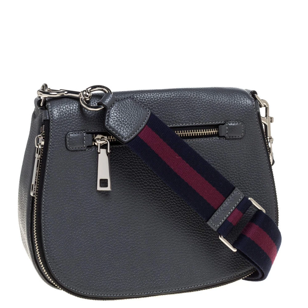 This Marc Jacobs bag is smart and statement-making. Made from grey leather, it is accented with silver-tone hardware. It features a zipped pocket in the front along with a shoulder strap. The fabric-lined interior comes with a zip pocket.