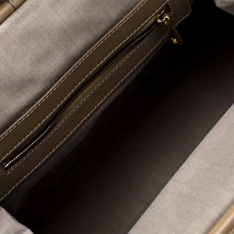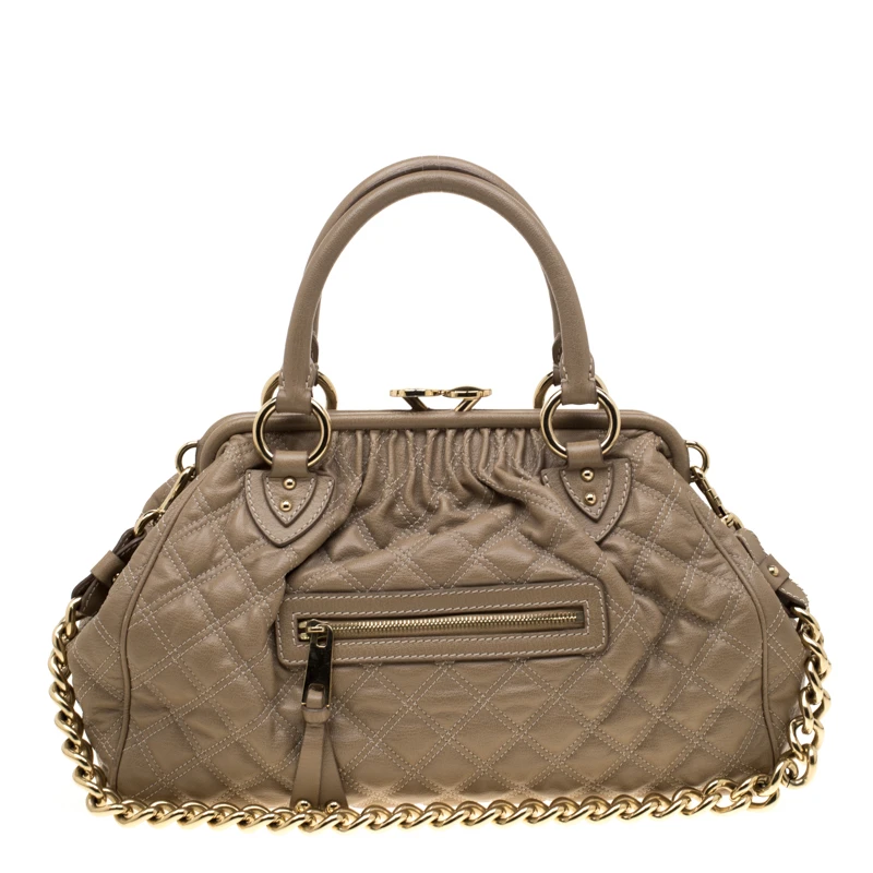 This Marc Jacobs design has a quilted exterior crafted from leather and gold-tone hardware. The elegant Stam bag features a kiss-lock top closure that opens to a fabric interior, a front zipper, dual handles and a shoulder chain. Swing this beauty wherever you go and make heads turn!