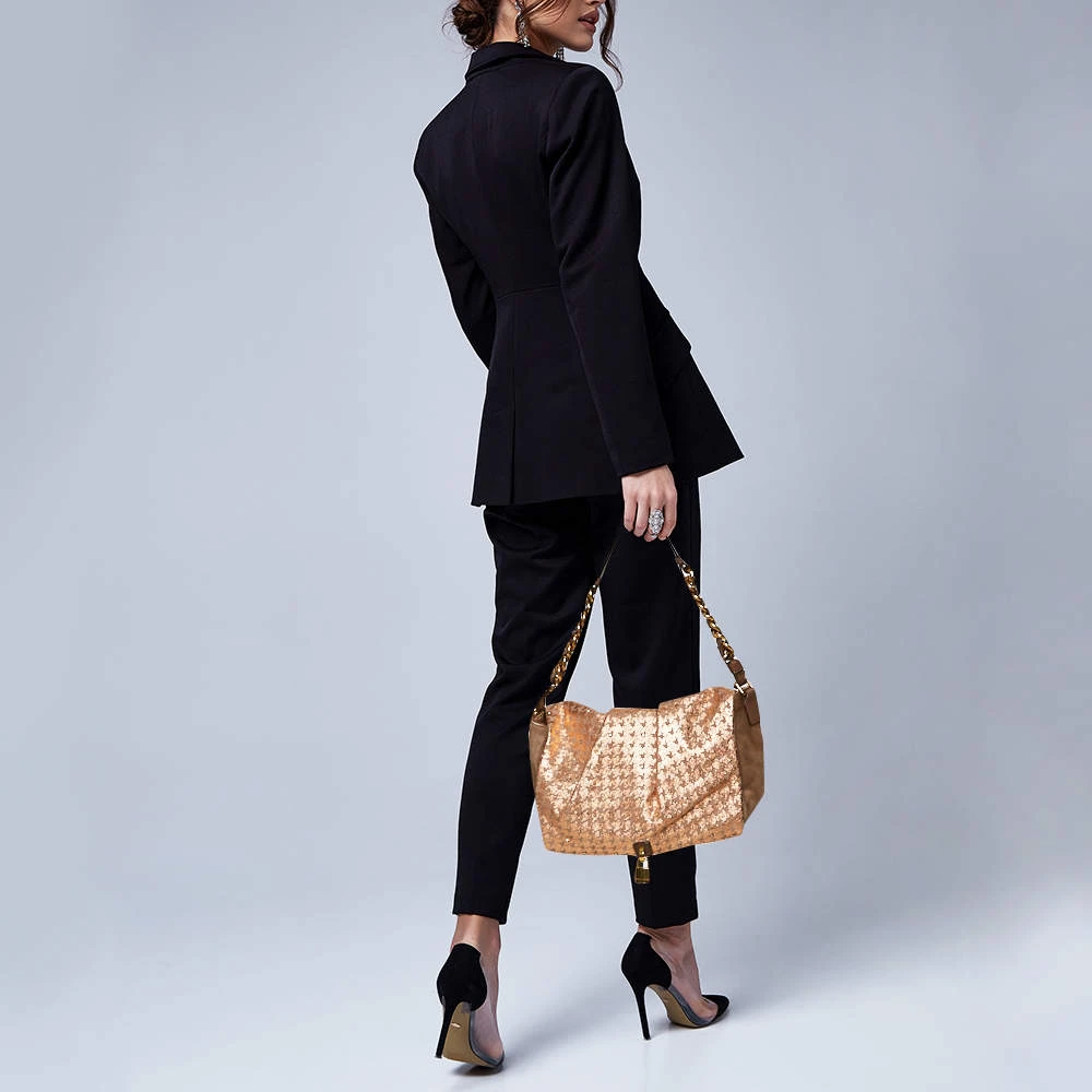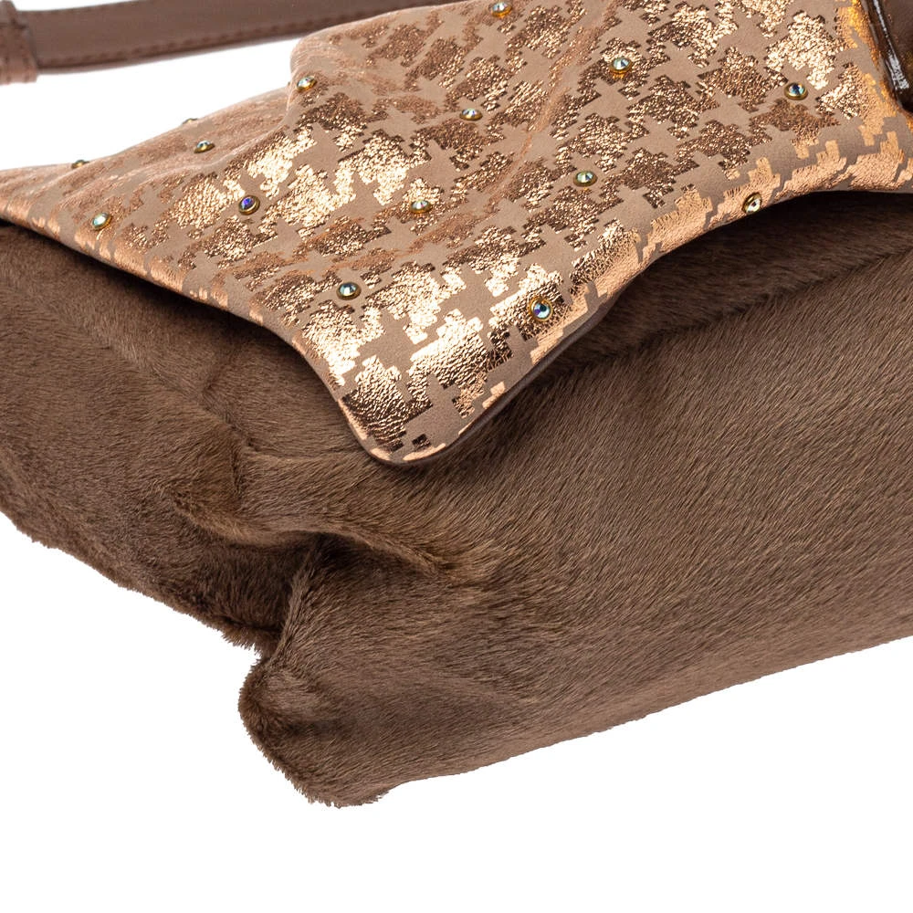 From the Jennifer collection by Marc Jacobs, comes this Rockstar shoulder bag in light shades of pink & brown. Crafted from calf hair and leather, it features a front flap closure with gold-tone padlock fastening and a single shoulder strap. The satin-lined interior features a zipped pocket.