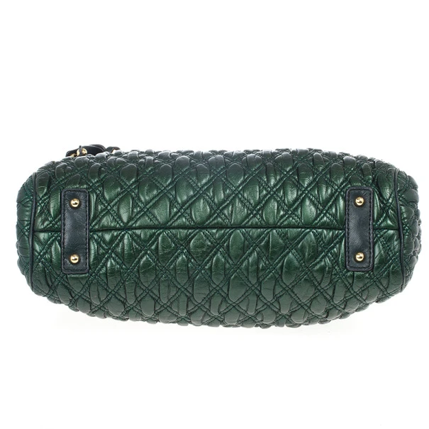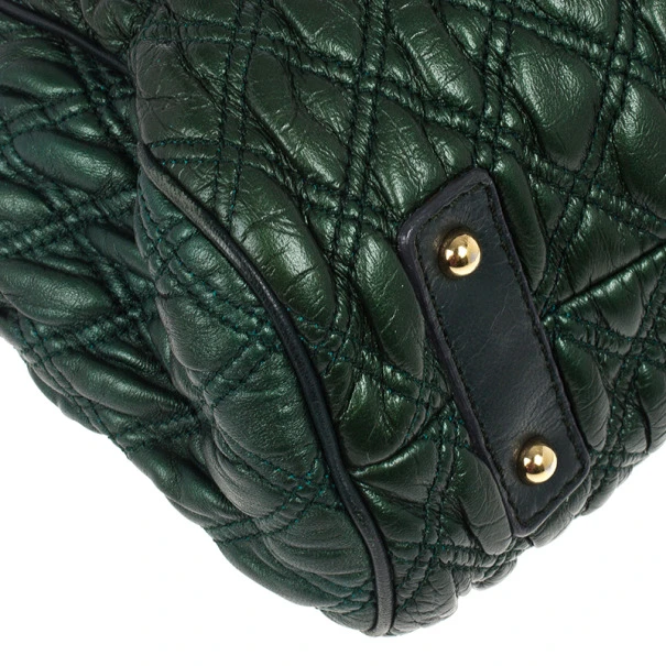 Named after the beautiful Jessica Stam, the Stam is one of the most wanted ‘it’ bags from Marc Jacobs. It is a cult classic among fashionistas who can’t get enough of the classic style that gets reinterpreted every season. This version of the bag is crafted from green quilted stitched leather that is detailed with a thick brass chain-link shoulder strap, brass kiss lock and a front zip pocket. The interior is lined with fabric and features a zip pocket.Original Retail Price: US $957
