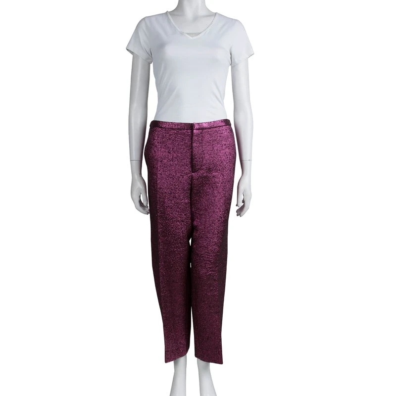 These metallic-fuchsia bouclé wool-blend pants from Marc Jacobs are unapologetically glamorous. Rendered in a refined cropped silhouette, this dazzling pair is designed with slant pockets, rear welt pockets, pressed creases, and concealed hook and zip fastening at waist.