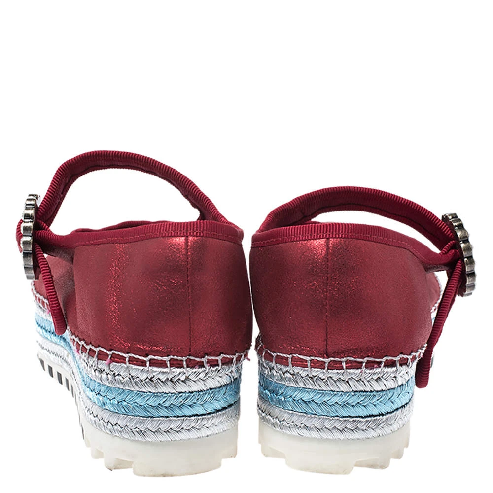 Brilliantly designed to stand out and capture your attention, these Mary Jane platforms from Marc Jacobs are perfect for the fashionable you! These metallic red Suzi platforms are crafted from leather, feature round toes and a crystal embellished buckled strap across the vamps. They come equipped with comfortable canvas-lined insoles and 4.5 cm heels. The tough rubber soles complete this gorgeous pair.
