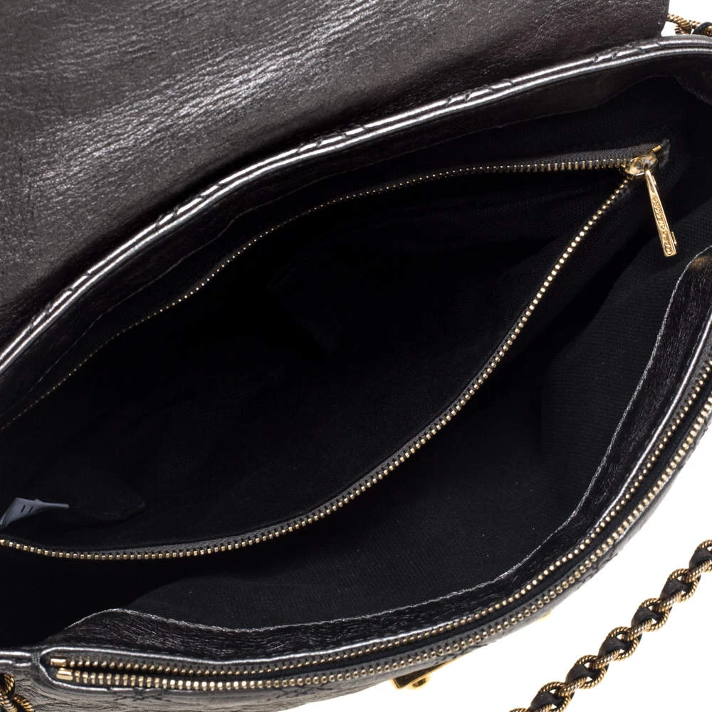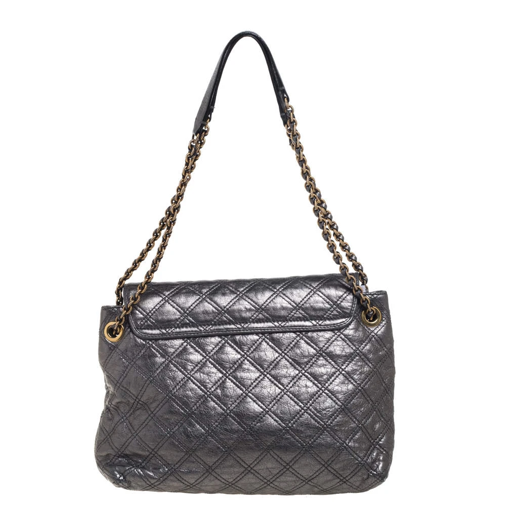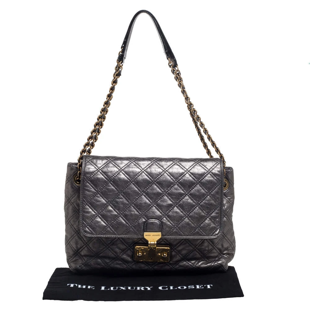 Stylish and easy to carry, this metallic silver leather shoulder bag is quite a choice if you’re looking to upgrade your bag collection. Crafted beautifully, the Marc Jacobs bag has quilting all over, a well-lined canvas interior, and two chain-leather handles.