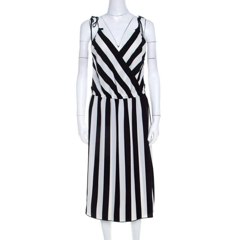 A stylish statement dress by Marc Jacobs is just what you need. This monochrome striped midi dress is tailored from durable fabric blend. With a shoulder tie-up detail and plunge neckline, it is just perfect. Team it with yellow sandals and silver-tone accessories for a much chic look.