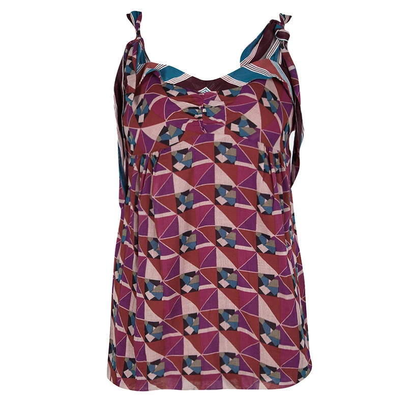 Tailored in a lightweight and comfortable cotton fabric, this Marc Jacobs top features a multicolour geometric print all over. This sleeveless style top features a tie detail on the shoulder straps and comes with a subtle sweetheart neckline. Wear for those summer day outings for a cool look.