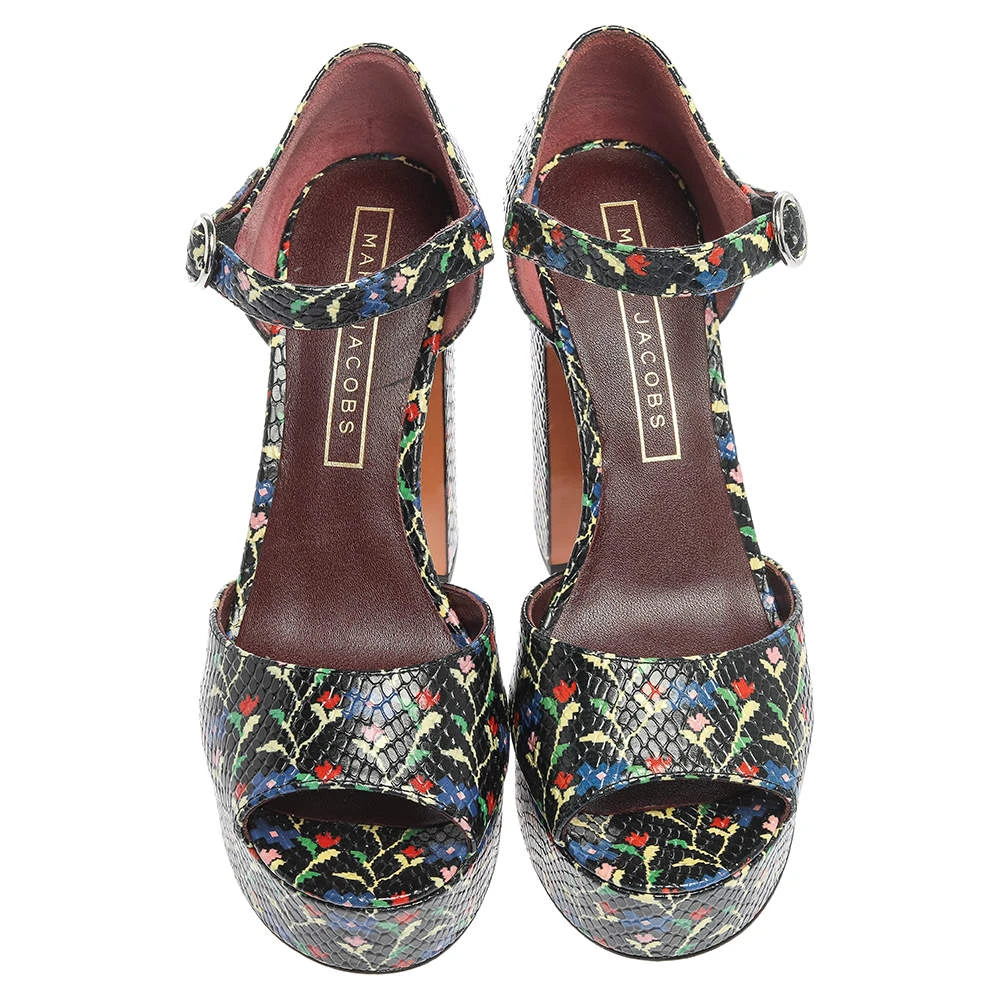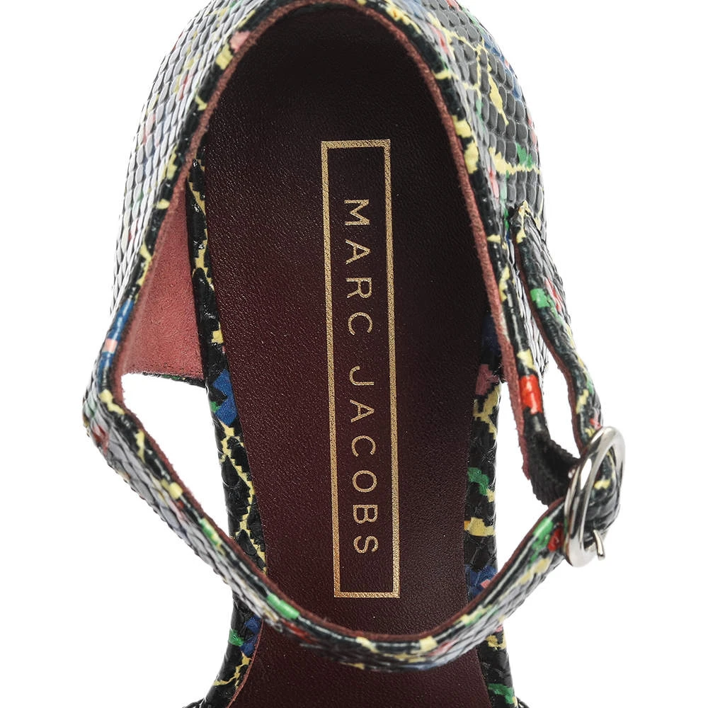 These stylish and feminine sandals hail from the house of Marc Jacobs! They have been crafted from snake-embossed leather and carry a multicolored floral exterior. They have platforms, open toes, buckled ankle straps, 12.5 cm block heels and silver-tone hardware. They are finished with leather insoles.