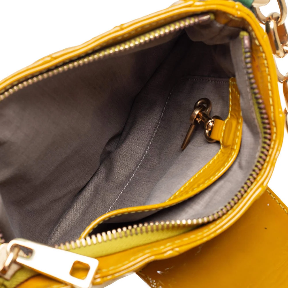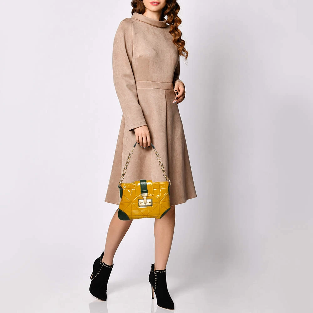 Coming from the house of Marc Jacobs, this trendy handbag ensures versatility and style. Presenting a patent leather handbag which is an absolute mixture of fashion and utility. The bag opens up to showcase a fabric-lined interior. This yellow bag displays your fashion-forward choice when it comes to accessories.