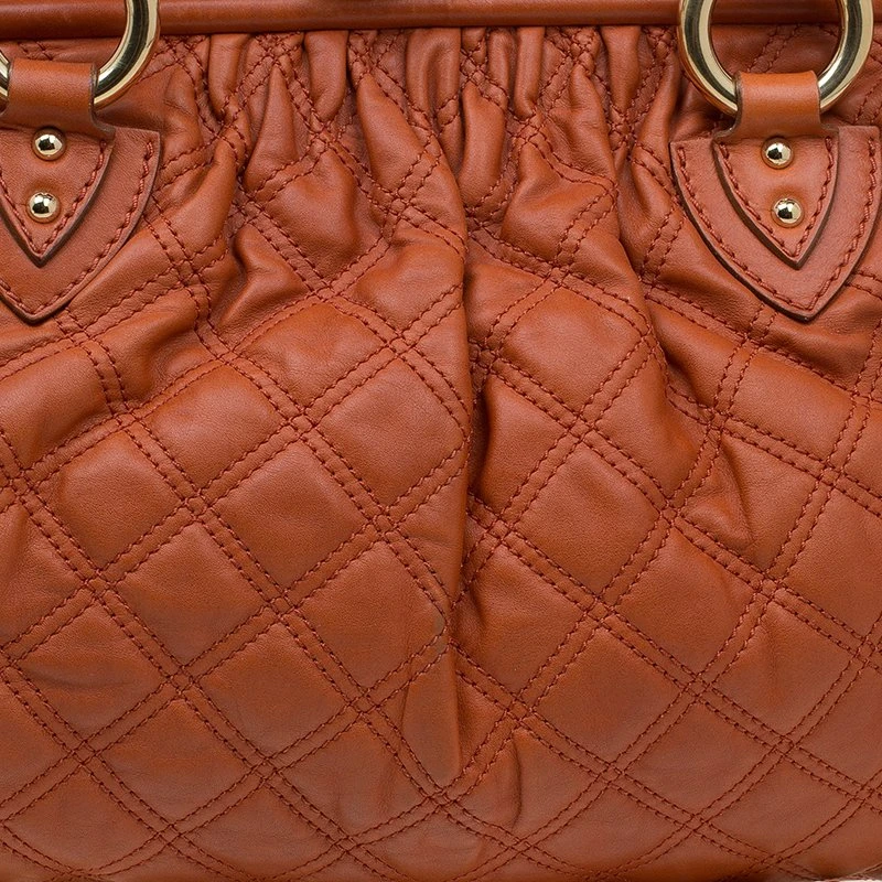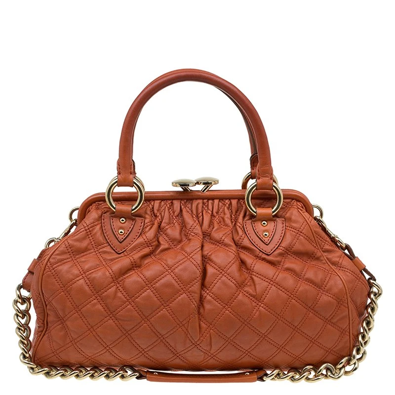 The orange color shoulder bag designed by Marc Jacobs was named after the beautiful Jessica Stam. The bag comes with a kiss-lock closure that opens to a spacious fabric-lined interior with a zip pocket. Crafted from quilted leather the bag features a removable chain link shoulder strap, two top rolled leather handles, an exterior zip pocket and four protective feet.