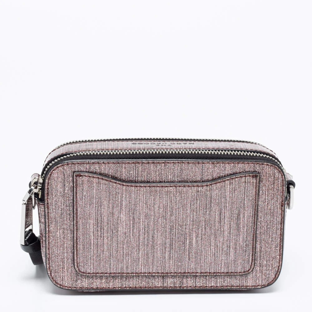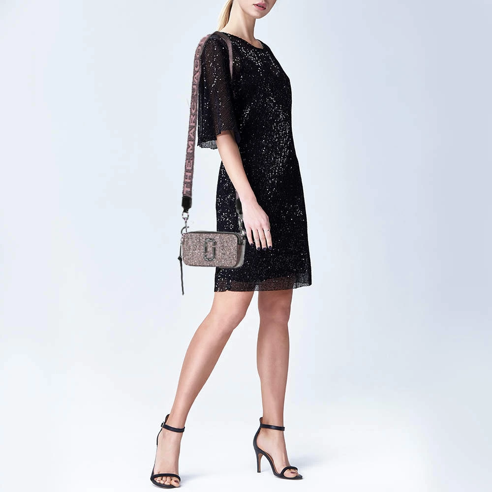This cute camera bag from Marc Jacobs will be your most preferred grab-and-go companion. Made from glitter patent leather, it features a fabric-lined interior, an external open pocket at the back, and a wide shoulder strap. The brand signature on the front gives it a luxe update.