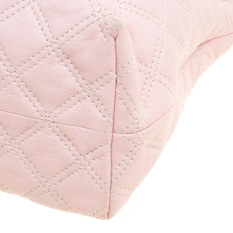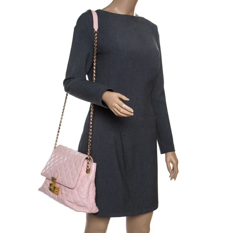 This elegant Marc Jacobs design is simply beautiful. The pink quilted bag is crafted from leather and designed with gold-tone hardware and a flap which secures a spacious canvas interior. This Baroque bag is sure to make heads turn whenever you swing this beauty using the chain link.