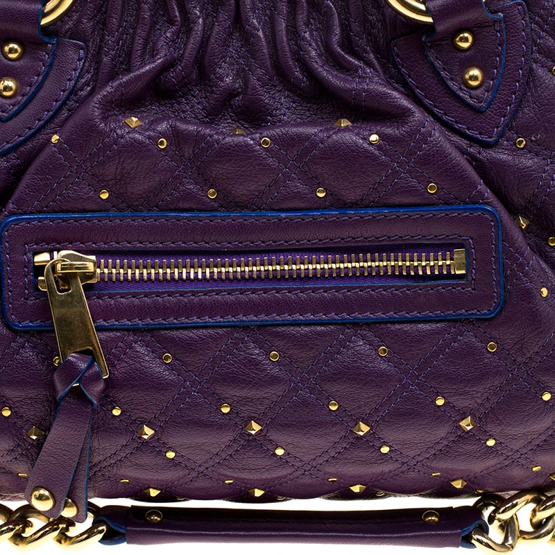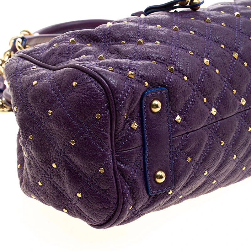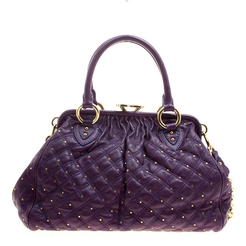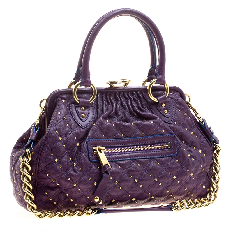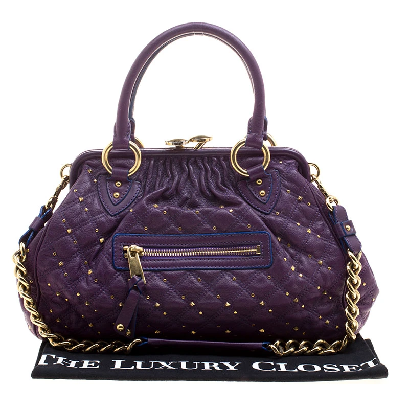 This Marc Jacobs design has a purple quilted exterior crafted from leather and gold-tone hardware. The elegant Stam bag features a kiss-lock top closure that opens to a fabric interior, a front zipper, dual handles and a shoulder chain. Swing this beauty wherever you go and make heads turn!
