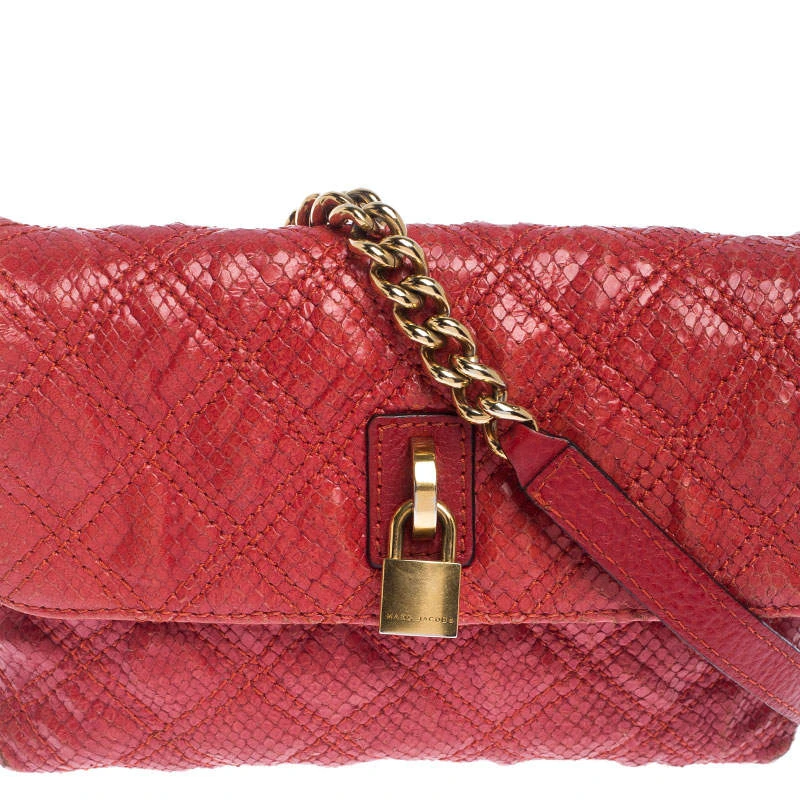 It is time you owned a statement Marc Jacobs handbag. A fresh take on femininity, this bag crafted from leather is perfect to complete your evening ensembles. This beautifully made bag flaunts a padlock on the front and a shoulder chain. The fabric lined interior is well-sized.