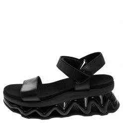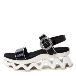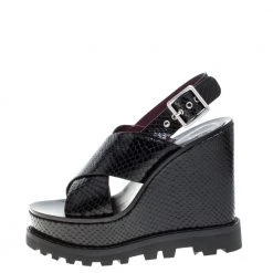 Marc By Marc Jacobs Black Python Embossed Leather Irving Platform Wedge Sandals Size 35.5 For Women