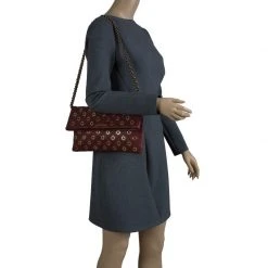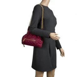 Marc Jacobs Burgundy Leather And Snakeskin Embossed Leather J Patchwork Shoulder Bag For Women
