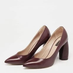 Marc Jacobs Burgundy Leather And Python Embossed Pointed Toe Block Heel Pumps Size 35 For Women