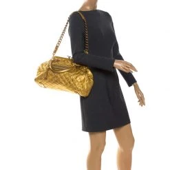 Marc Jacobs Black/Gold Houndstooth Print Leather And Fur Little Stam Shoulder Bag For Women