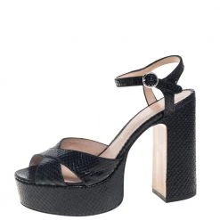 Marc Jacobs Black/Beige Python Embossed Leather Criss Crss Platform Ankle Strap Size 36 For Women