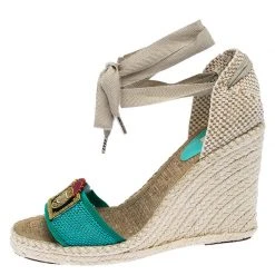 Marc Jacobs Multicolor Mesh And Woven Canvas Wedge Espadrilles Ankle Wrap Sandals Size 37 For Women